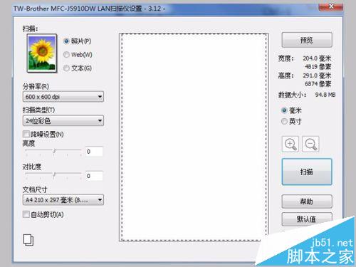 11、出现“用Brother Mfc-J15910dw lan 扫描”的对话框,按扫描,如图所示