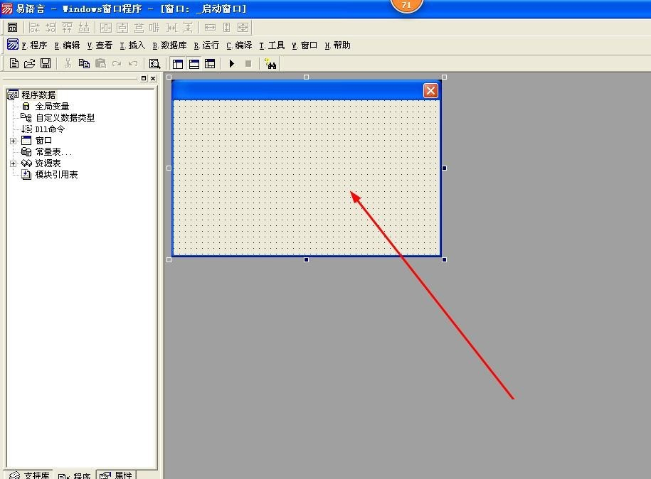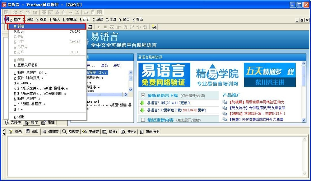 1、启动“易语言”。