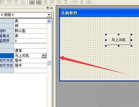 4、双击程序中的马上关机按钮,进入代码区,输入代码:运行 (“shutdown -s -t 1”, 假, )