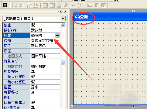 2、在工作夹找到标题项,更改程序的标题为 “QQ登陆“。