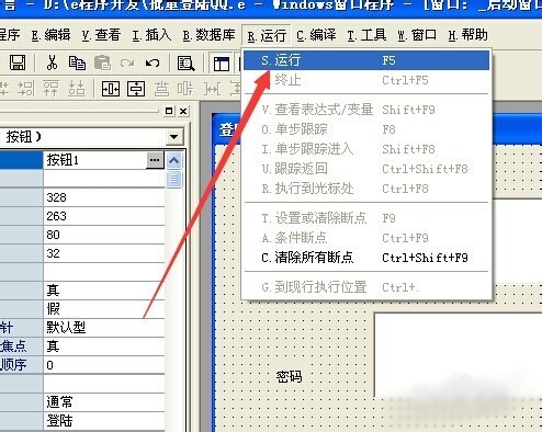 8、双击登录按钮,在代码区输入代码: