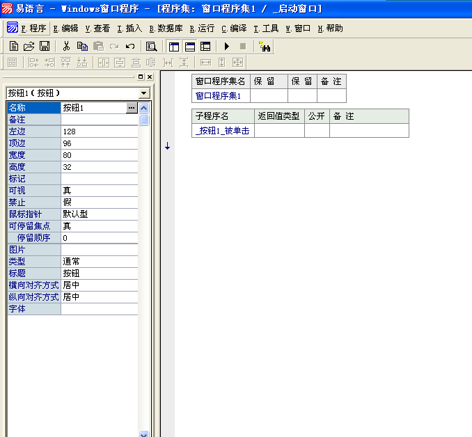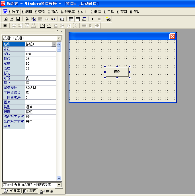 3、双击按钮进入编程界面,我们在这里编写程序。