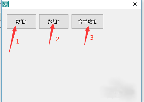 2、在窗口中加入三个按钮,命名为数组1,数组2,合并数组