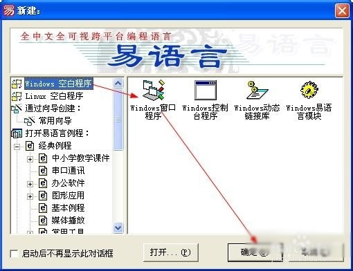 再在右边新出现的列表中鼠标左键单击标题为“Windows窗口程序”的项;