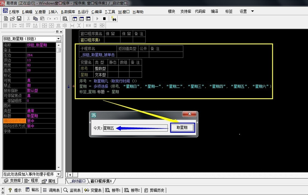以上就是风趣小海豚最近收集整理的关于易语言取星期几的方法总结的全部内容,更多相关易语言取星期几内容请搜索靠谱客的其他文章。
