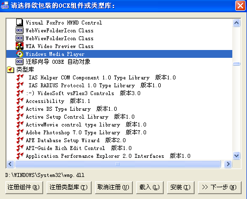如果该组件没有在列表中列出,请单击“注册组件”按钮将其注册到Windows系统中,
