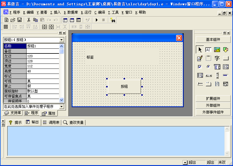 下面我们分析一下按钮组件与标签组件在程序设计中起到了什么样的作用吧。