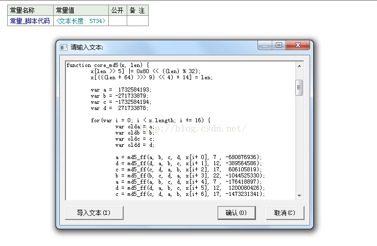 这是简单界面 然后添加md5加密的js脚本到常量内
