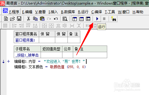 编辑框1.内容 = “欢迎进入‘易'世界!”