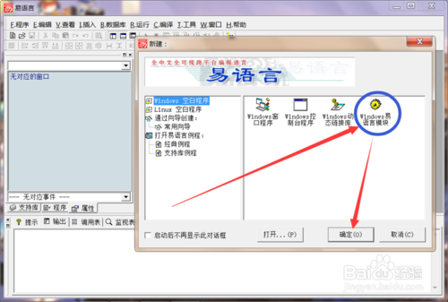 打开自己易语言软件,找到如下图所示的第四个按钮,单击一下,点击确定按钮进入模块制作界面