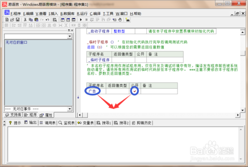 可以对子程序名进行重命名,这里我改成“广告”两字,第三个公开要勾选上,如下图所示