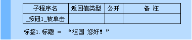 <2>、在子程序的程序部分输入“bq1.bt = "祖国,您好!"”后回车。
