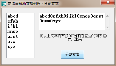 以上就是健康猫咪最近收集整理的关于易语言分割文本命令将一段文本通过指定文本分割开的全部内容,更多相关易语言分割文本命令将一段文本通过指定文本分割开内容请搜索靠谱客的其他文章。