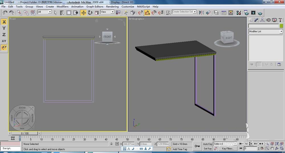 2、在顶视图中创建一个340*440*10的长方体,作为套几的”支架“,形态及参数如图。