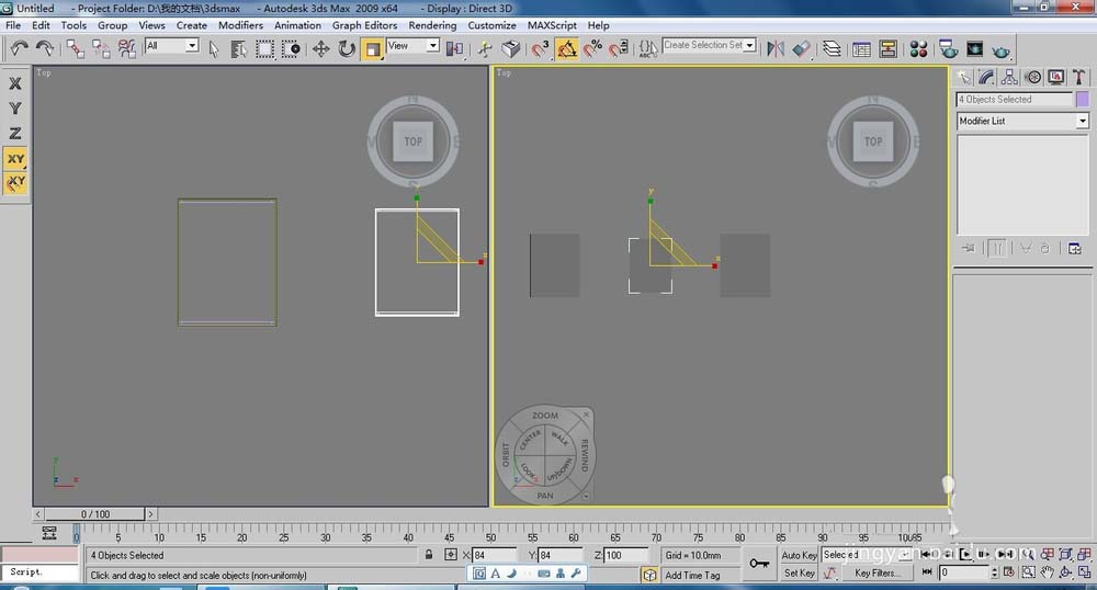 4、在顶视图中用实例方式复制出一个,位置如图。
