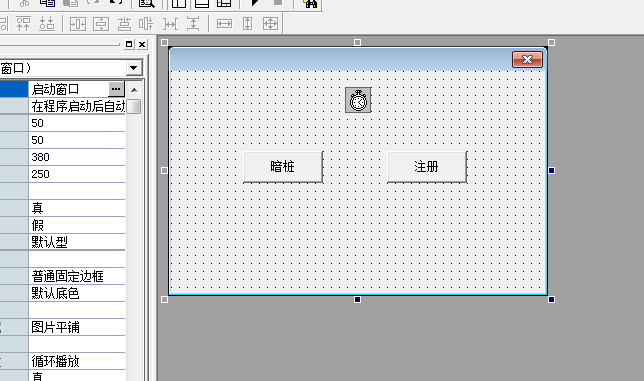 新建一个窗口程序,然后添加一个时钟,再添加两个按钮(名称别去修改,就这样)