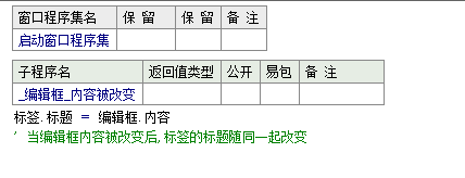 以上就是有魅力小猫咪最近收集整理的关于易语言改变编辑框内容时标签内容同步被改变的方法的全部内容,更多相关易语言改变编辑框内容时标签内容同步被改变内容请搜索靠谱客的其他文章。