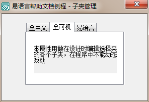如图所示:在选择夹中编辑了三个子夹,名称分别为“全中文”,“全可视”,“易语言”。