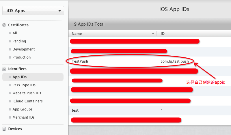 *创建APP ID,同一个公司可能会使用类似于 com.example.* 这样通用的 App ID,但是如果要在 App 中加入消息推送功能,那么是不能使用通用 ID 的,需要为之单独创建一个。