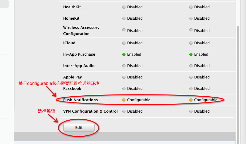 如果你是为已有的 App 增加消息推送功能,那么打开原有的 App ID,开启 Push Notification 选项即可。流程跟上面的一样。
