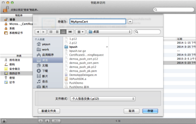 将文件保存为 .p12 格式,输入密码,如图所示: