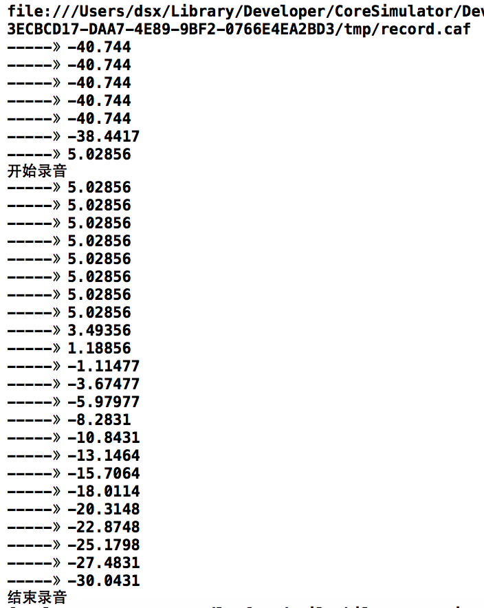 尝试的结果如下打印,其中数值就是一直监听分贝数。极安静的情况下是-160 嘈杂环境一般是-40起。