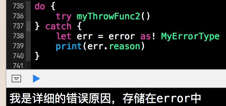 throw MyErrorType(reason: "我是详细的错误原因,存储在error中")