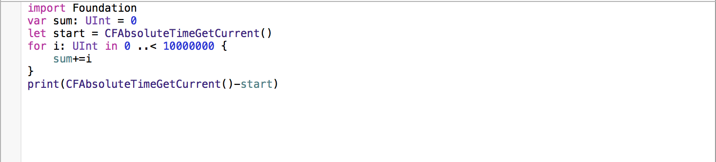 今天用swift写了1至99 9999的和,测试其执行效率,但是发现不同代码执行效率大大不同