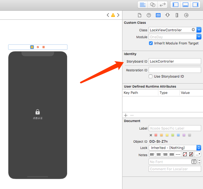 为了方便调用,给遮盖页设置了StoryBoard ID为LockController。
