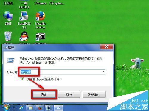 解决方法:先全盘杀毒处理,然后打开“运行”程序,输入regedit命令,确定,进入注册表。