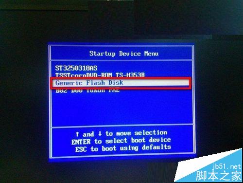 解决方法:先制作一个启动盘(以通用PE工具箱为例),然后从U盘启动,现在大多电脑按F12键,选择自已U盘名称,或USB-HDD之类,就能快速进入U盘启动,如下图。如果是老式的BIOS,根据自已的主板来设置U盘启动。