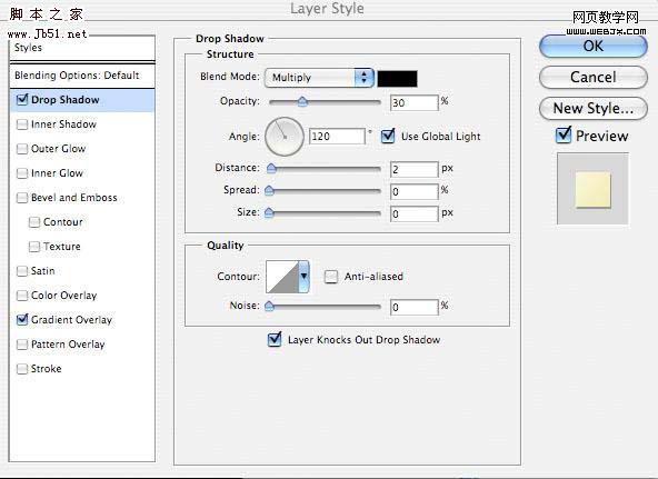 23、转到图层混合模式设置笔触图层的图层样式,应用渐变叠加和阴影,具体设置如下。