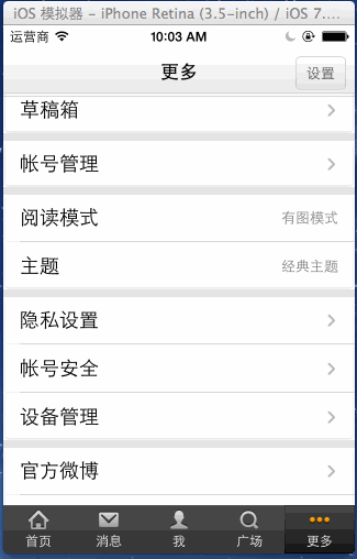 以上就是超级红酒最近收集整理的关于iOS开发之路--微博“更多”页面的全部内容,更多相关iOS开发之路--微博“更多”页面内容请搜索靠谱客的其他文章。