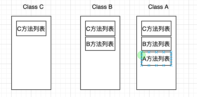 假设A类继承B类,B类继承C类,如下图所示: