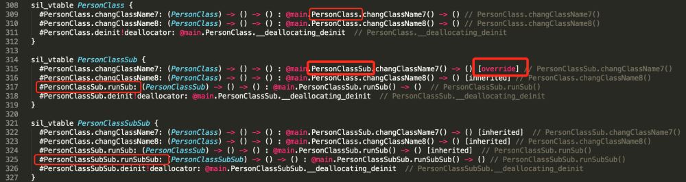 【3】还有一个不同点是,SIL 中为 PersonClass 自动生成了sil_vtable: