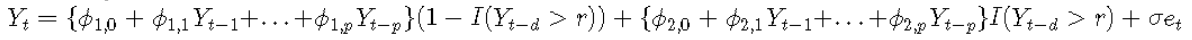 为简单起见,除了假设p1 = p2 = p,1≤d≤p,还假设σ1=σ2=σ。然后可以将TAR模型方便地写为
