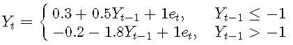 σ是噪声标准偏差,Yt-1是阈值变量,r是阈值参数, {et}是具有零均值和单位方差的iid随机变量序列。