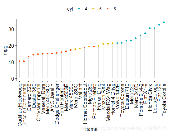 下面我们介绍一种更简便且高级的棒棒糖图绘制方法:使用ggpubr包中的ggdotchart()函数。