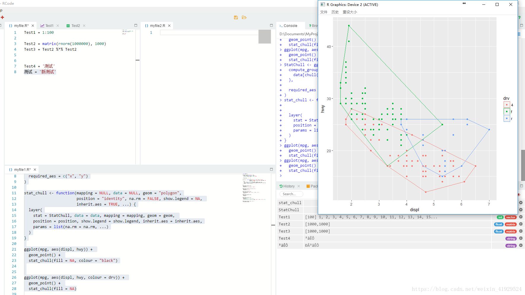 画个图还会专门弹出一个窗口显示,并未进行整合。这就是R的原生画图,体验不是很好。个人比较倾向于RStudio中有个专门plot的标签。