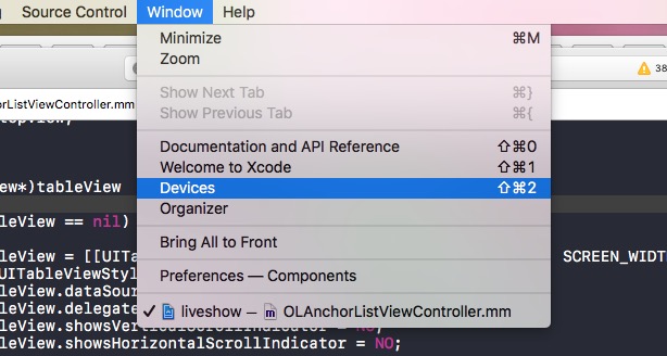 1.打开Xcode->Winwos->Devices