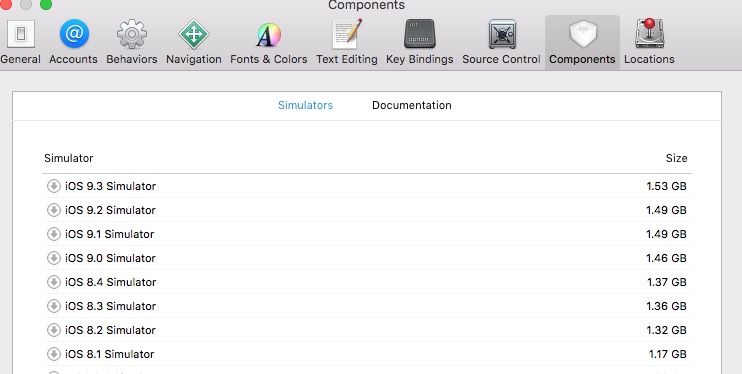 更新了Xcode8后,模拟器莫名的消失了。看了一下Xcode文件夹,SDK都在