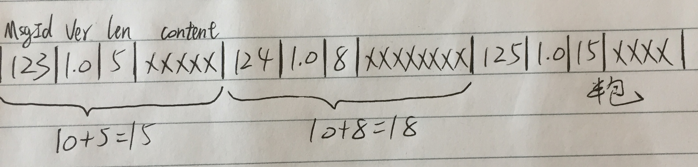在做socket编程时,如果是做tcp连接,那就不可避免的会遇到粘包与半包的问题,粘包就是多组数据被一并接收了,粘在了一起,无法做划分;半包就是有数据接收不完整,无法处理。要解决粘包、半包的问题,一般在设计数据(消息)格式时会约定好一个字段专门用于描述数据包的长度,这样就使数据有了边界,依靠这个边界,就能把每组数据划分出来,数据不完整时也能获知数据的缺失。