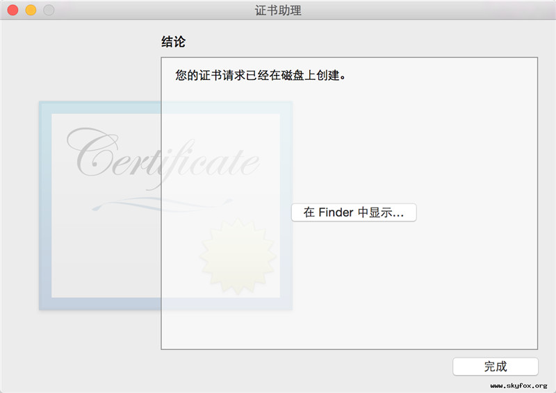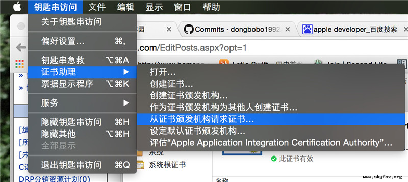 然后我们打开Mac上的钥匙串,从证书颁发机构请求证书