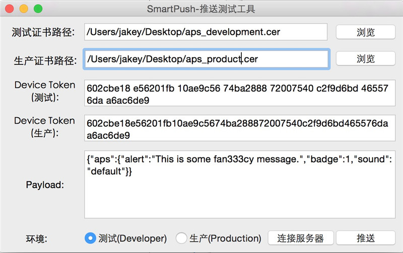接下来我们用SmartPush来测试一下我们的推送:https://github.com/shaojiankui/SmartPush