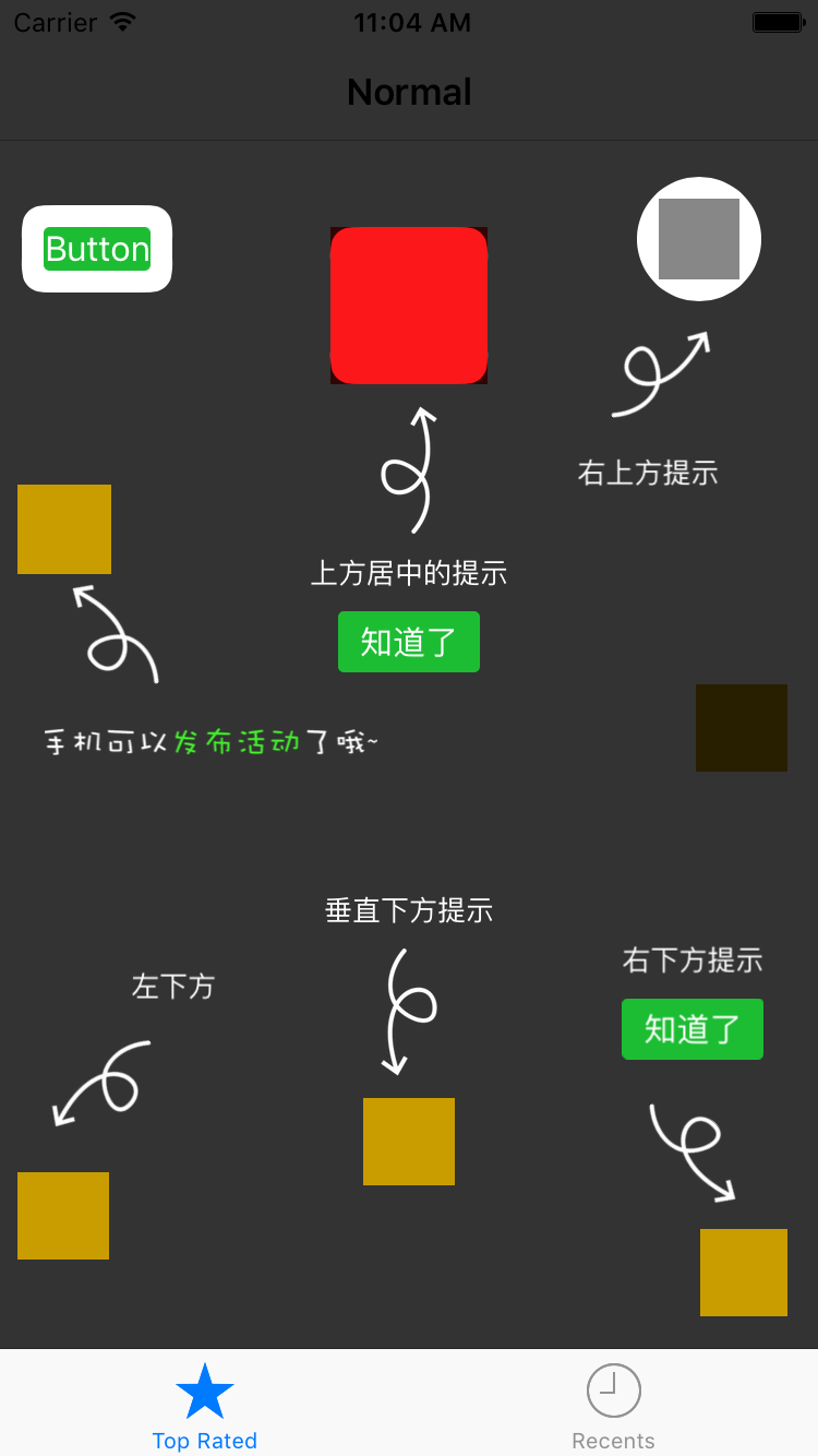 EAFeatureGuideView是UIView的一个扩展,用来做新功能引导提示,达到这样的效果: