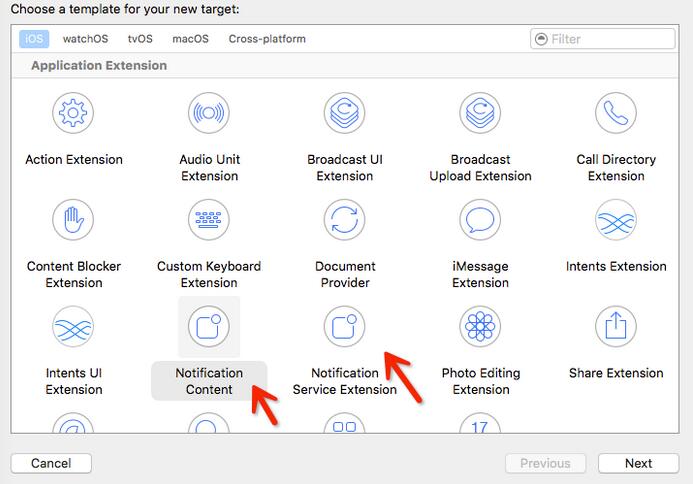 如图,Notification Content负责自定义通知UI,Notification Service Extension负责接收并处理数据