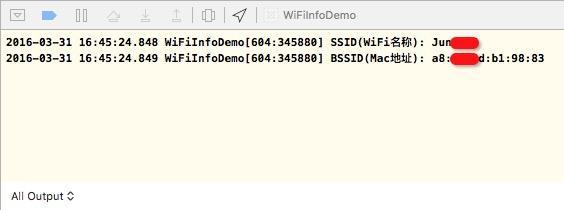 NSLog("BSSID(Mac地址): (wifiInfo.1)")