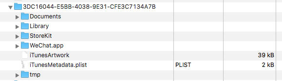 上方截图就是上述命令运行后所输出的内容,从上述内容中我们轻而易举的就可以找到“WeChat”所在目录。我们可以通过iExplore打开该目录,更直观的来看一下微信App所在的目录,具体内容如下所示. 上面这个进程的绝对路径我们要记下来,因为后边砸壳的时候会使用到该路径。