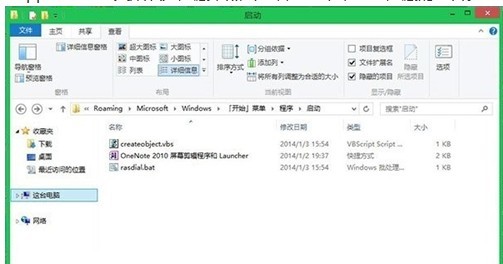 3、定位到(C:\用户\<用户名>\AppData\Roaming\Microsoft\Windows\「开始」菜单\程序\启动)路径下。将刚才创建的rasdial.bat及createobject.vbs脚本文件移动/复制到启动根目录下