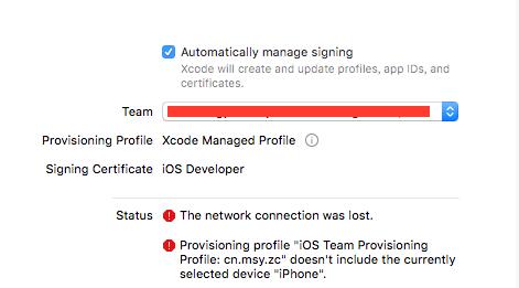 用Xcode8打开工程后,比较明显的就是下图了,这个是苹果的新特性,可以帮助我们自动管理证书。建议大家勾选这个Automatically manage signing(Ps.但是在beat2版本我用的时候,完全不可以,GM版本竟然神奇的又好了。)